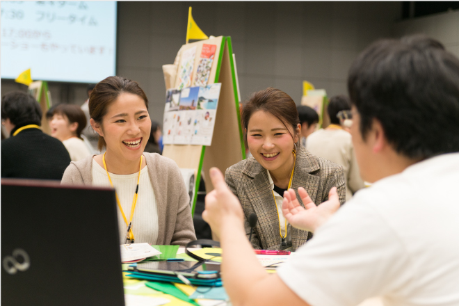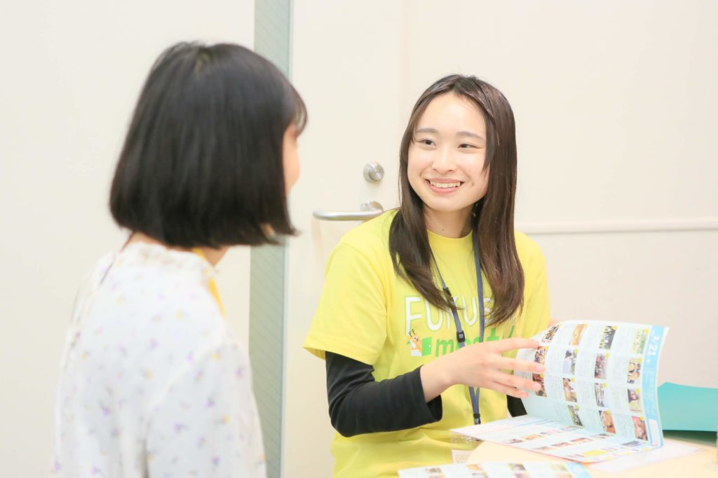大学4年生や新人職員など、ちょっと上の先輩が就活や人生の相談に気軽にのってくれます。悩んでいること、考えていることを何でも聞いてみよう。